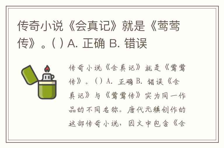 传奇小说《会真记》就是《莺莺传》。( ) A. 正确 B. 错误