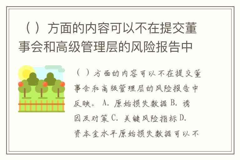 ( )方面的内容可以不在提交董事会和高级管理层的风险报告中反映。 A. 原始损失数据 B. 诱因及对策 C. 关键风险指标 D. 资本金水平