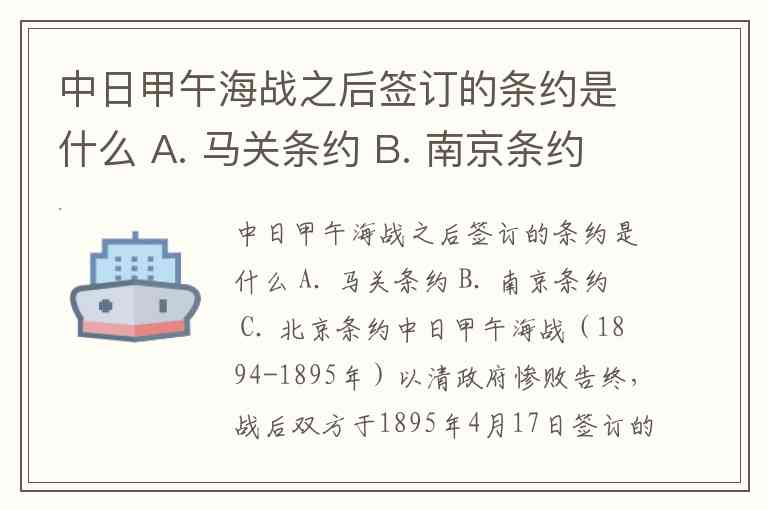 中日甲午海战之后签订的条约是什么 A. 马关条约 B. 南京条约 C. 北京条约