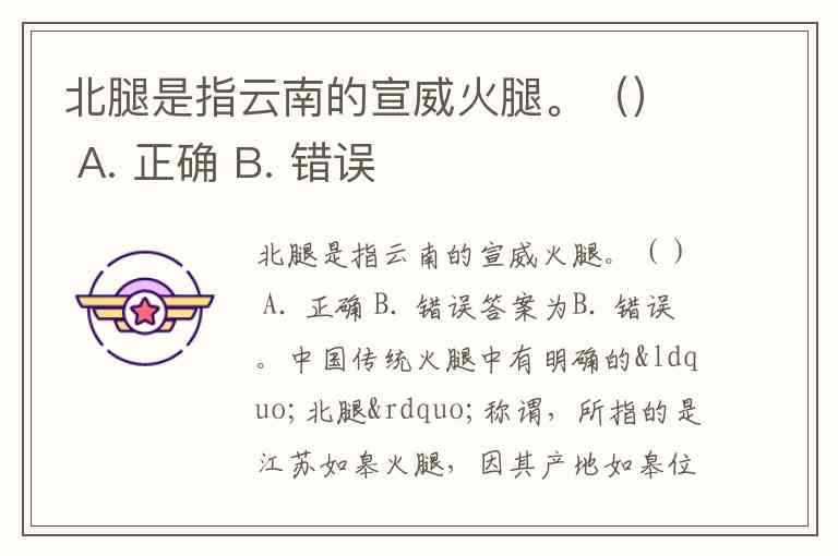 北腿是指云南的宣威火腿。() A. 正确 B. 错误