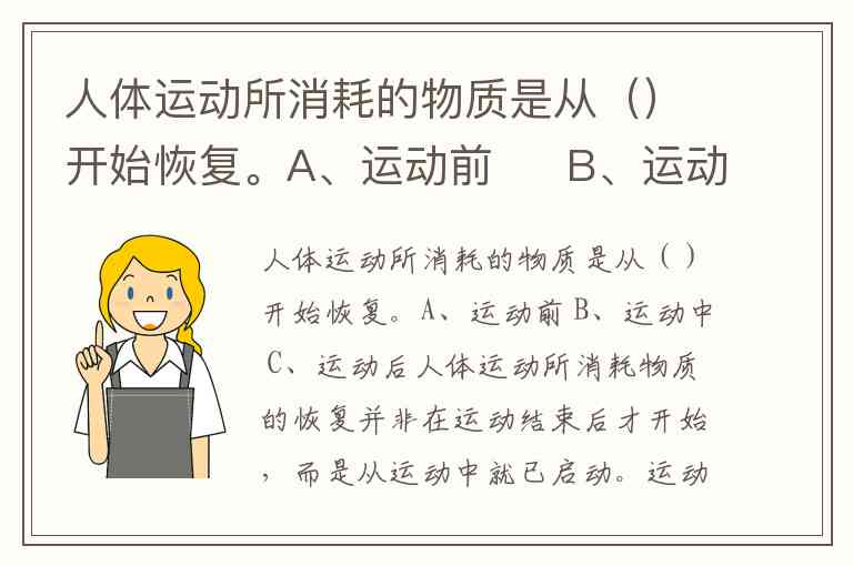 人体运动所消耗的物质是从()开始恢复。A、运动前 B、运动中 C、运动后