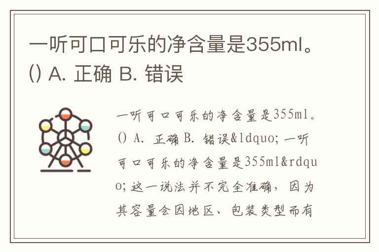 一听可口可乐的净含量是355ml。() A. 正确 B. 错误