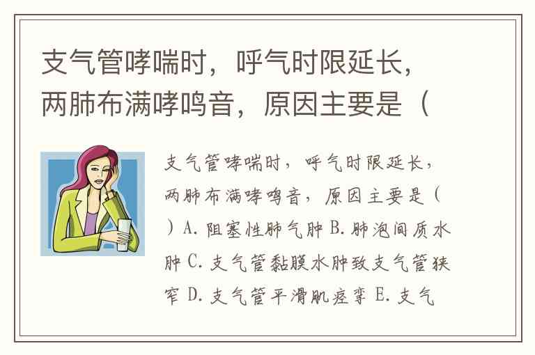 支气管哮喘时,呼气时限延长,两肺布满哮鸣音,原因主要是()A.阻塞性肺气肿 B.肺泡间质水肿 C.支气管黏膜水肿致支气管狭窄 D.支气管平滑肌痉挛 E.支气管内大量黏稠分泌物积存