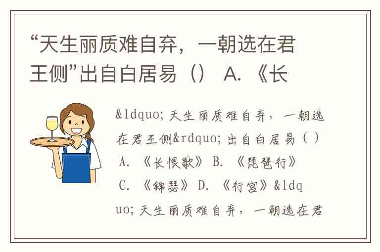 “天生丽质难自弃,一朝选在君王侧”出自白居易() A. 《长恨歌》 B. 《琵琶行》 C. 《锦瑟》 D. 《行宫》
