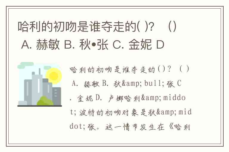 哈利的初吻是谁夺走的( )?() A. 赫敏 B. 秋•张 C. 金妮 D. 卢娜