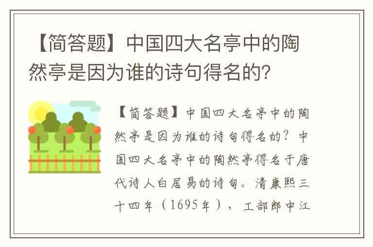 【简答题】中国四大名亭中的陶然亭是因为谁的诗句得名的?