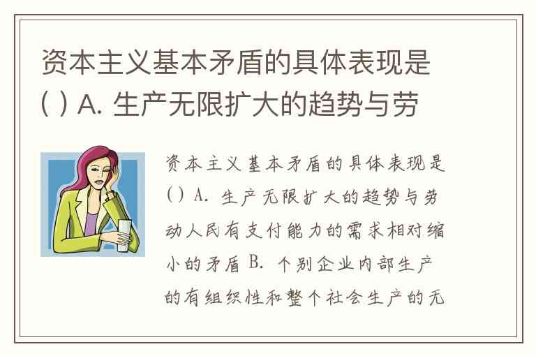 资本主义基本矛盾的具体表现是( ) A. 生产无限扩大的趋势与劳动人民有支付能力的需求相对缩小的矛盾 B. 个别企业内部生产的有组织性和整个社会生产的无政府状态之间的矛盾 C. 在阶级关系上为无产阶级与资产阶级的矛盾 D. 在国际关系上为发达国家与发展中国家的矛盾