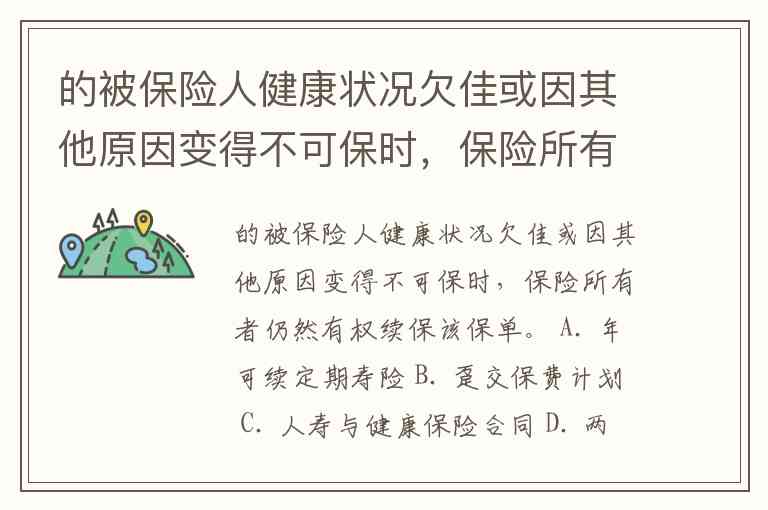 的被保险人健康状况欠佳或因其他原因变得不可保时,保险所有者仍然有权续保该保单。 A. 年可续定期寿险 B. 趸交保费计划 C. 人寿与健康保险合同 D. 两全保险合同
