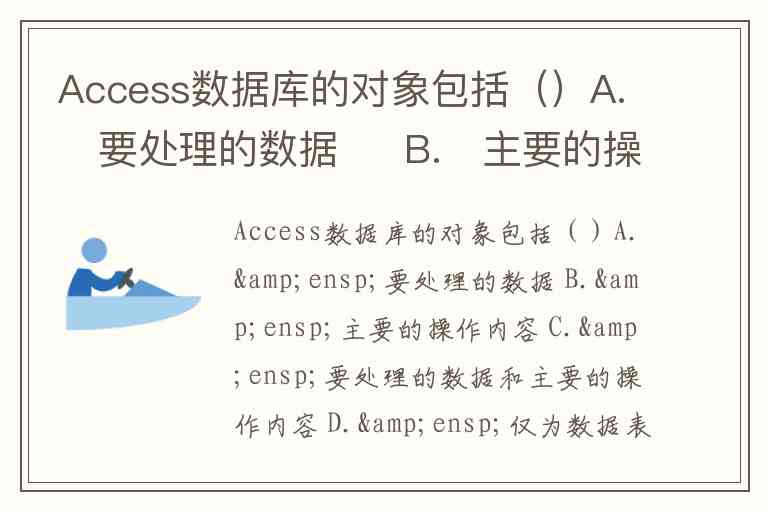 Access数据库的对象包括()A. 要处理的数据 B. 主要的操作内容 C. 要处理的数据和主要的操作内容 D. 仅为数据表