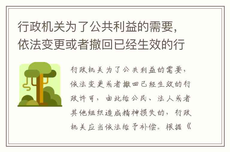 行政机关为了公共利益的需要,依法变更或者撤回已经生效的行政许可,由此给公民、法人或者其他组织造成精神损失的,行政机关应当依法给予补偿。