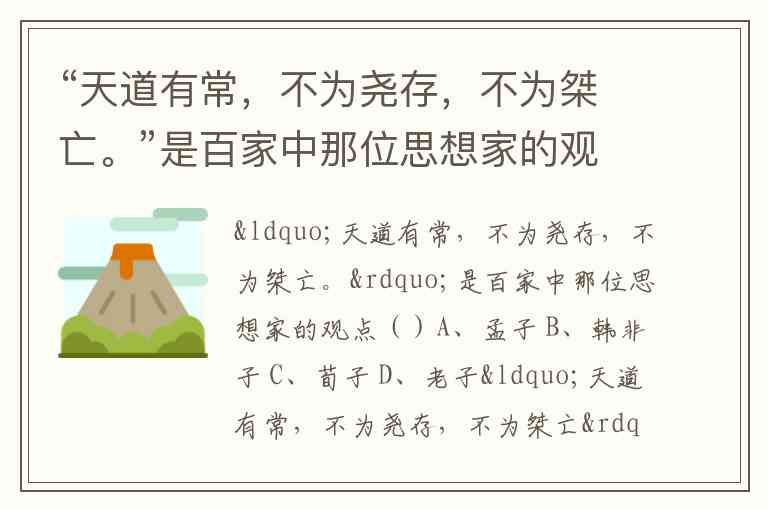 “天道有常,不为尧存,不为桀亡。”是百家中那位思想家的观点()A、孟子 B、韩非子 C、荀子 D、老子