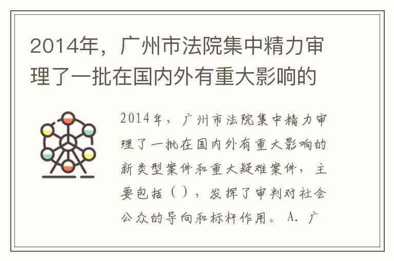 2014年,广州市法院集中精力审理了一批在国内外有重大影响的新类型案件和重大疑难案件,主要包括(),发挥了审判对社会公众的导向和标杆作用。 A. 广州王老吉大健康产业有限公司?王老吉有限公司确认不侵害商标权纠纷案 B. “西湖龙井”地理标志证明商标权利人在广州茶叶销售市场的维权系列案件 C. “三一”驰名商标保护案 D. “IPAD”商标权属纠纷案