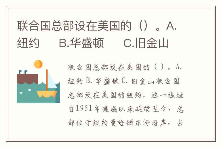 联合国总部设在美国的()。A.纽约 B.华盛顿 C.旧金山