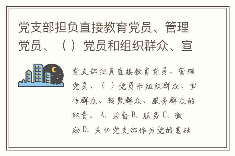 党支部担负直接教育党员、管理党员、( )党员和组织群众、宣传群众、凝聚群众、服务群众的职责。 A. 监督 B. 服务 C. 激励 D. 关怀