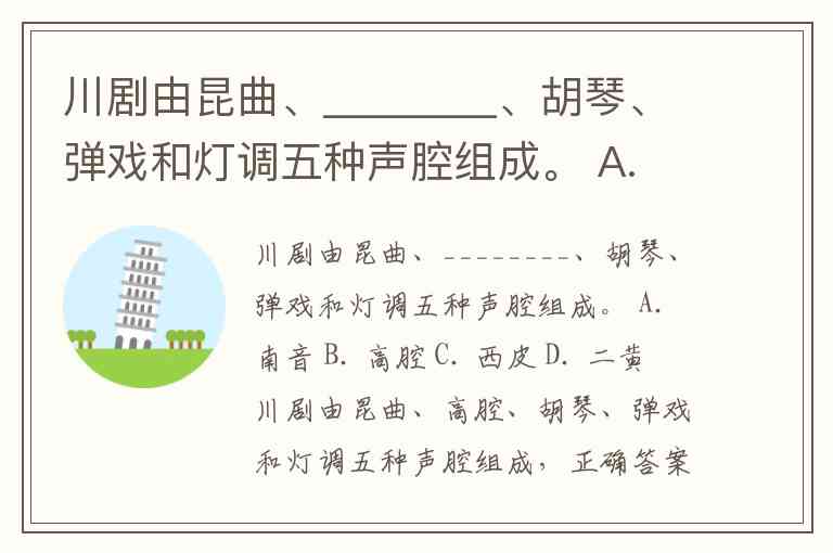 川剧由昆曲、________、胡琴、弹戏和灯调五种声腔组成。 A. 南音 B. 高腔 C. 西皮 D. 二黄