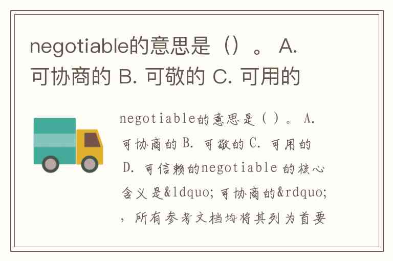 negotiable的意思是()。 A. 可协商的 B. 可敬的 C. 可用的 D. 可信赖的