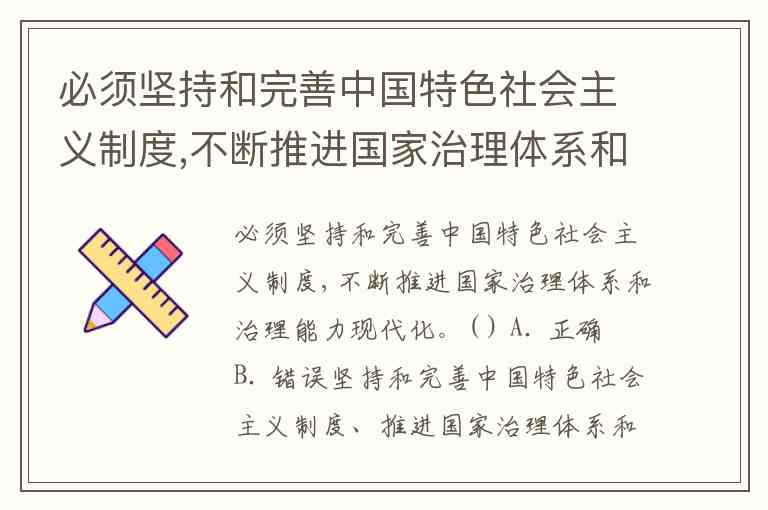 必须坚持和完善中国特色社会主义制度,不断推进国家治理体系和治理能力现代化。( ) A. 正确 B. 错误