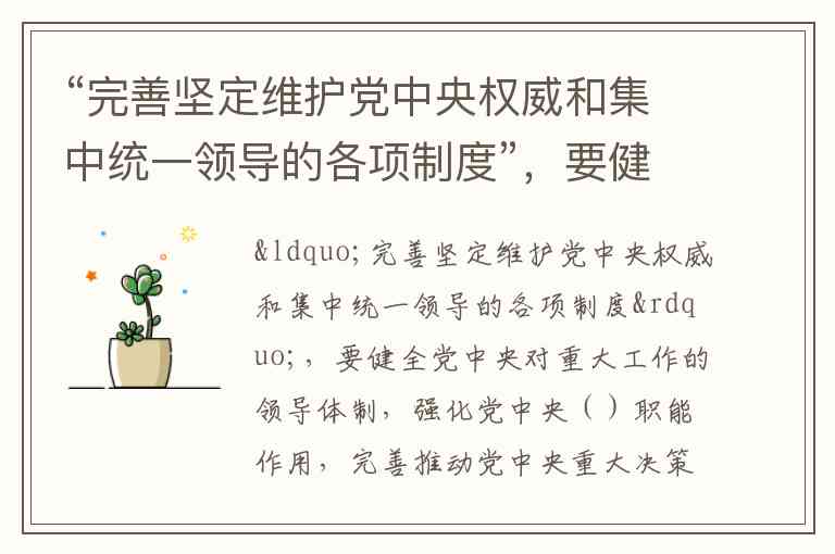 “完善坚定维护党中央权威和集中统一领导的各项制度”,要健全党中央对重大工作的领导体制,强化党中央()职能作用,完善推动党中央重大决策落实机制,严格执行向党中央请示报告制度,确保令行禁止。A.决策协调监督结构 B.决策议事监督结构 C.统筹协调监督结构 D.决策议事协调机构