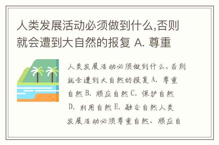 人类发展活动必须做到什么,否则就会遭到大自然的报复 A. 尊重自然 B. 顺应自然 C. 保护自然 D. 利用自然 E. 融合自然