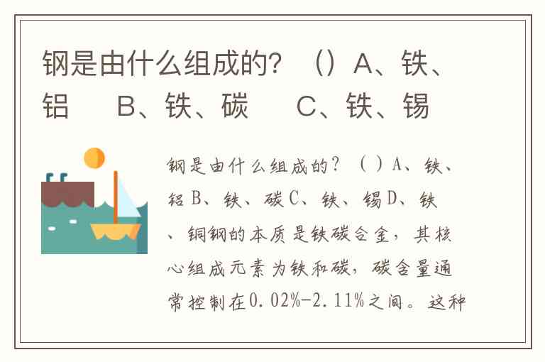 钢是由什么组成的?()A、铁、铝 B、铁、碳 C、铁、锡 D、铁、铜
