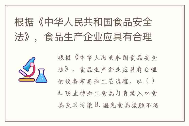 根据《中华人民共和国食品安全法》,食品生产企业应具有合理的设备布局和工艺流程,以()A.防止待加工食品与直接入口食品交叉污染 B.避免食品接触不洁物 C.防止原料与成品交叉污染 D.避免食品接触有毒物