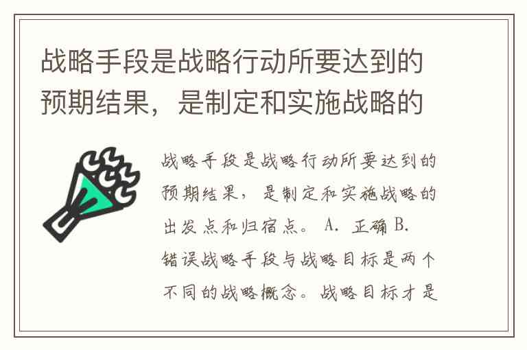 战略手段与战略目标是两个不同的战略概念。战略目标才是战略行动要达到的预期结果,是制定和实施战略的出发点和归宿;而战略手段是实现战略目标所采取的方法、措施和途径。题目混淆了两者的定义,因此表述错误。