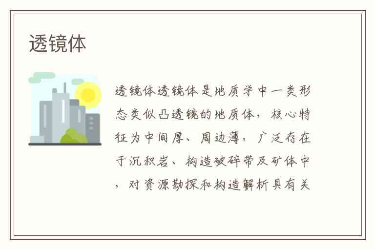 透镜体是地质学中一类形态类似凸透镜的地质体,核心特征为中间厚、周边薄,广泛存在于沉积岩、构造破碎带及矿体中,对资源勘探和构造解析具有关键意义。其形成往往与沉积环境、构造应力或流体活动密切相关,不同类型的透镜体在油气储集、矿产分布和地壳运动研究中发挥着不同作用。