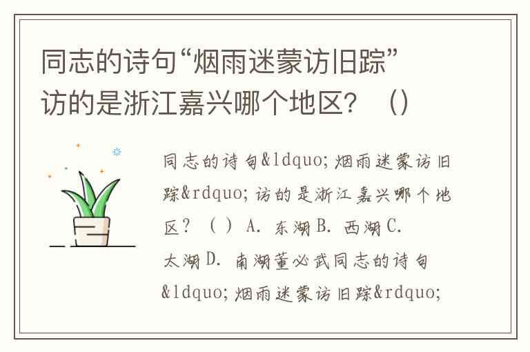 同志的诗句“烟雨迷蒙访旧踪”访的是浙江嘉兴哪个地区?() A. 东湖 B. 西湖 C. 太湖 D. 南湖