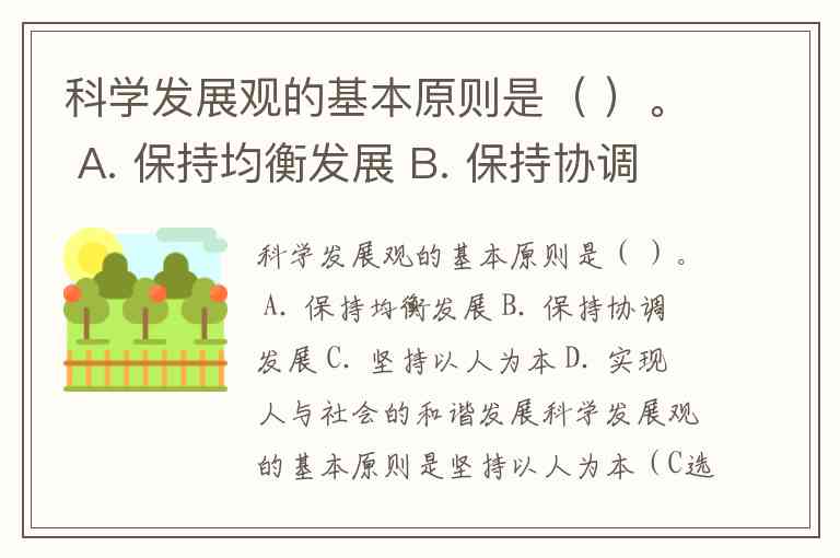 科学发展观的基本原则是( )。 A. 保持均衡发展 B. 保持协调发展 C. 坚持以人为本 D. 实现人与社会的和谐发展