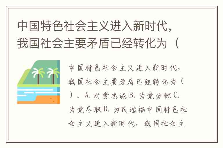 中国特色社会主义进入新时代,我国社会主要矛盾已经转化为()。A.对党忠诚 B.为党分忧 C.为党尽职 D.为民造福