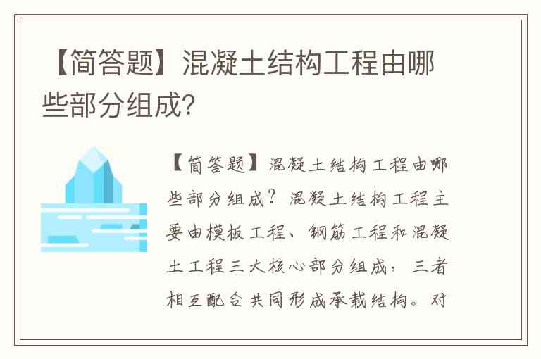 【简答题】混凝土结构工程由哪些部分组成?