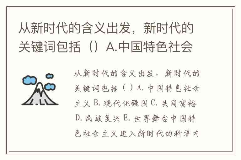 从新时代的含义出发,新时代的关键词包括()A.中国特色社会主义 B.现代化强国 C.共同富裕 D.民族复兴 E.世界舞台