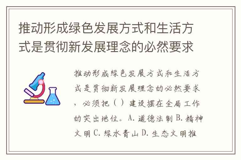 推动形成绿色发展方式和生活方式是贯彻新发展理念的必然要求,必须把()建设摆在全局工作的突出地位。A.道德法制 B.精神文明 C.绿水青山 D.生态文明