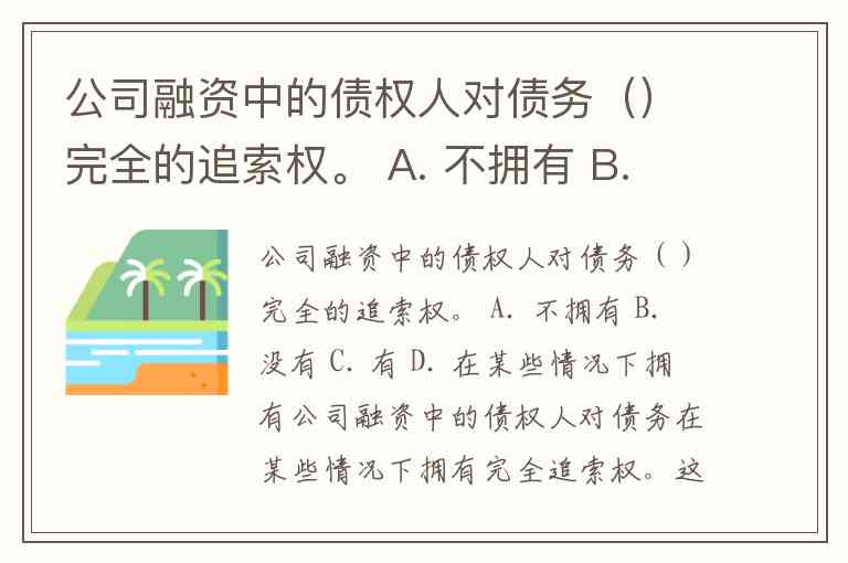 公司融资中的债权人对债务()完全的追索权。 A. 不拥有 B. 没有 C. 有 D. 在某些情况下拥有