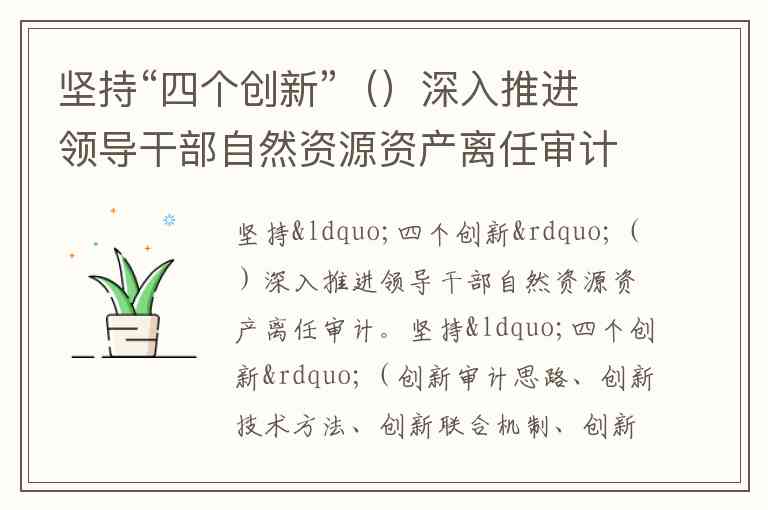 坚持“四个创新”()深入推进领导干部自然资源资产离任审计。