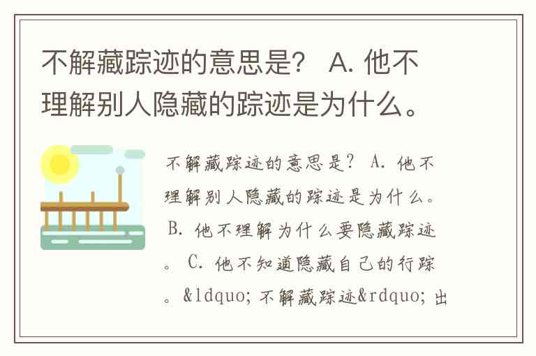 不解藏踪迹的意思是? A. 他不理解别人隐藏的踪迹是为什么。 B. 他不理解为什么要隐藏踪迹。 C. 他不知道隐藏自己的行踪。