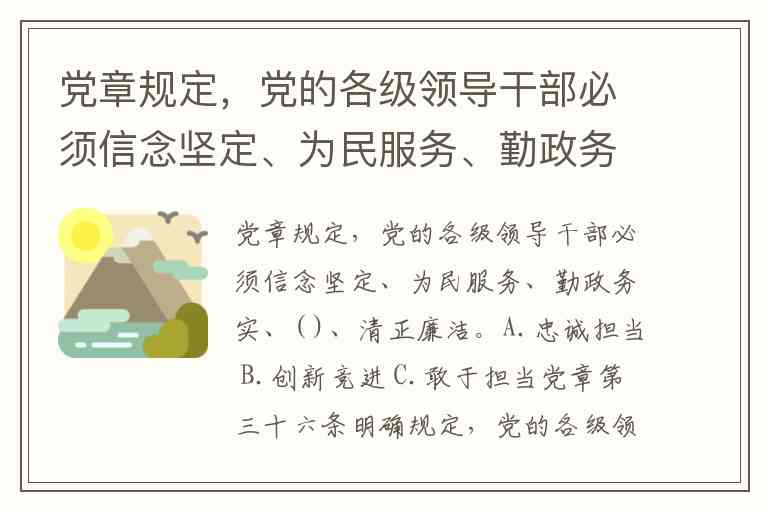 党章规定,党的各级领导干部必须信念坚定、为民服务、勤政务实、( )、清正廉洁。A.忠诚担当 B.创新竞进 C.敢于担当