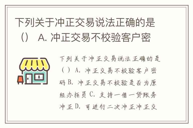 下列关于冲正交易说法正确的是() A. 冲正交易不校验客户密码 B. 冲正交易不校验是否为原经办柜员 C. 支持一借一贷账务冲正 D. 可进行二次冲正