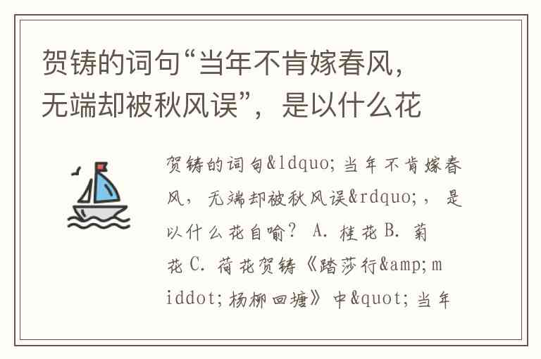 贺铸的词句“当年不肯嫁春风,无端却被秋风误”,是以什么花自喻? A. 桂花 B. 菊花 C. 荷花