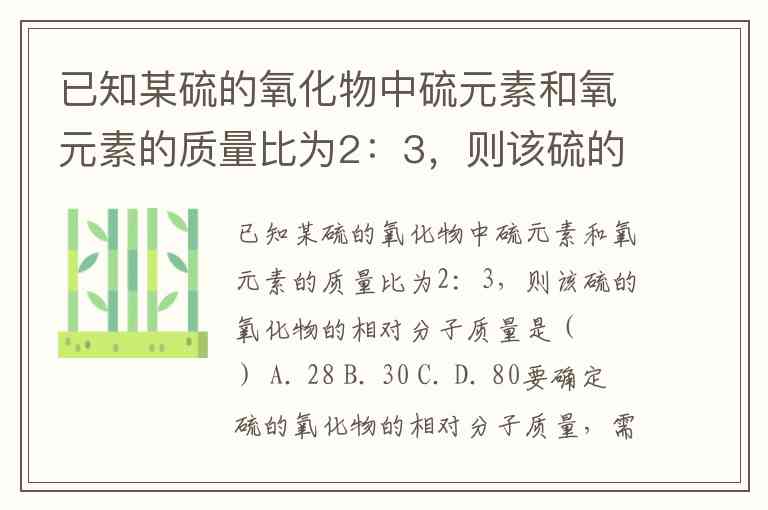 已知某硫的氧化物中硫元素和氧元素的质量比为2:3,则该硫的氧化物的相对分子质量是( ) A. 28 B. 30 C. D. 80