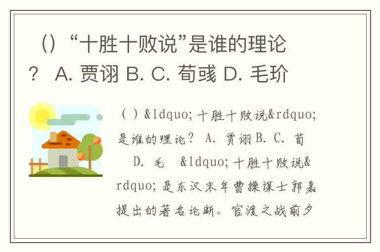 ()“十胜十败说”是谁的理论? A. 贾诩 B. C. 荀彧 D. 毛玠