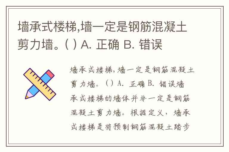 墙承式楼梯,墙一定是钢筋混凝土剪力墙。( ) A. 正确 B. 错误
