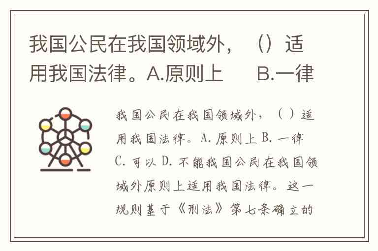 我国公民在我国领域外,()适用我国法律。A.原则上 B.一律 C.可以 D.不能