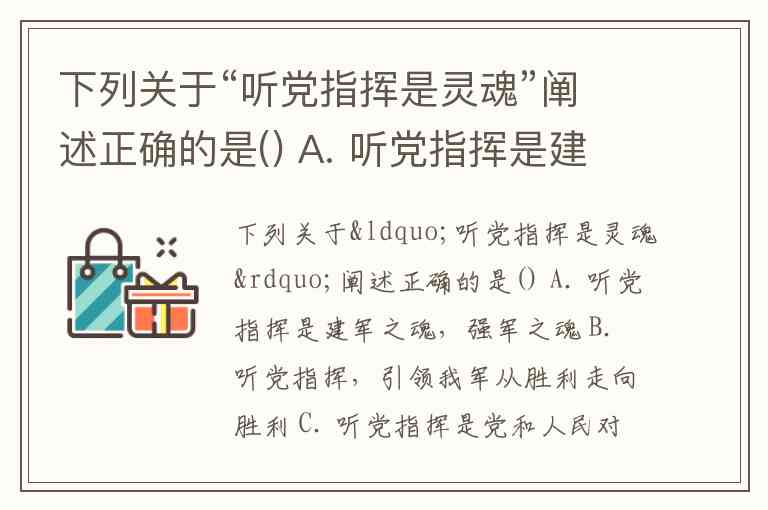 下列关于“听党指挥是灵魂”阐述正确的是() A. 听党指挥是建军之魂,强军之魂 B. 听党指挥,引领我军从胜利走向胜利 C. 听党指挥是党和人民对的最高政治要求 D. 一切行动听从党中央、和指挥