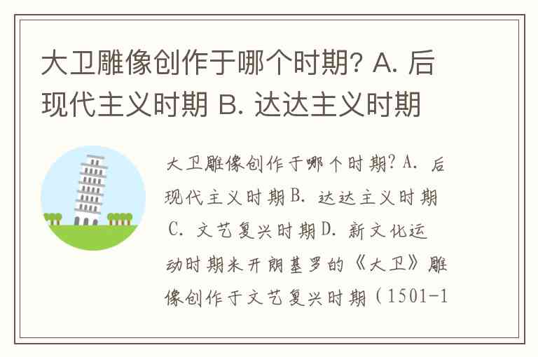 大卫雕像创作于哪个时期? A. 后现代主义时期 B. 达达主义时期 C. 文艺复兴时期 D. 新文化运动时期