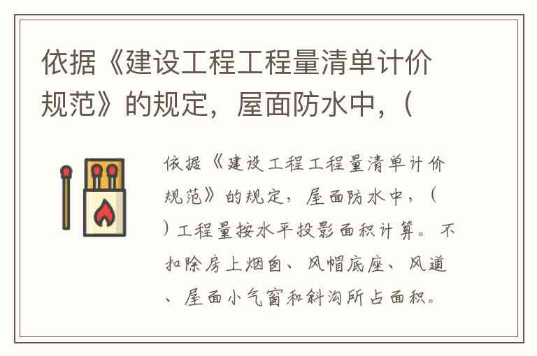 依据《建设工程工程量清单计价规范》,屋面防水工程中平屋顶的工程量按水平投影面积计算,且不扣除房上烟囱、风帽底座、风道、屋面小气窗和斜沟所占面积。这一规则在卷材防水和涂膜防水工程中均适用。