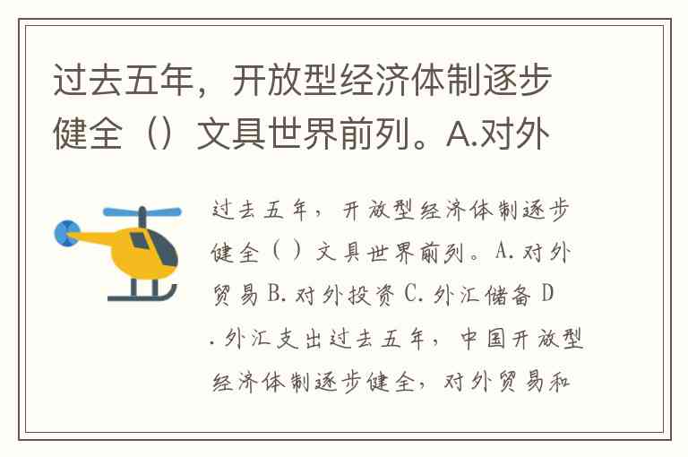 过去五年,开放型经济体制逐步健全()文具世界前列。A.对外贸易 B.对外投资 C.外汇储备 D.外汇支出