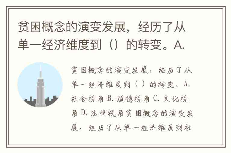 贫困概念的演变发展,经历了从单一经济维度到()的转变。A.社会视角 B.道德视角 C.文化视角 D.法律视角