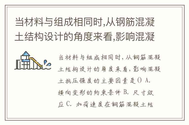 当材料与组成相同时,从钢筋混凝土结构设计的角度来看,影响混凝土抗压强度的主要因素是() A. 横向变形的约束条件 B. 尺寸效应 C. 加荷速度