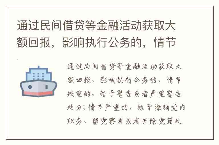 通过民间借贷等金融活动获取大额回报,影响执行公务的,情节较重的,给予警告或者严重警告处分;情节严重的,给予撤销党内职务、留党察看或者开除党籍处分。()